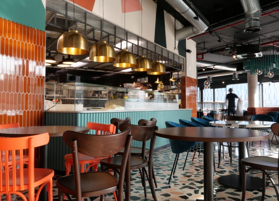 L’Osteria je restaurace, která se nachází na Masarykově nádraží, a pyšní se hravým designem a funkčností. Naše práce zahrnovala výrobní dokumentaci dle návrhů architektů z Německa, výrobu i realizaci. V prostoru nelze přehlédnout čalouněné sezení, které je očalouněné látkami se zajímavou texturou a barvami. Stolečky jsou také velmi variabilní, s jednoduchou černou nebo neobvykle tvarovanou mosaznou podnoží. Na podnože jsou instalované dřevěné desky, desky z terazzo materiálu ze Španělska a ze zeleného mramoru. Některé stolové desky jsou obohaceny o mosazné orámování hran. Největší dominantou je bar, na jehož výrobě se náš tým také podílel.