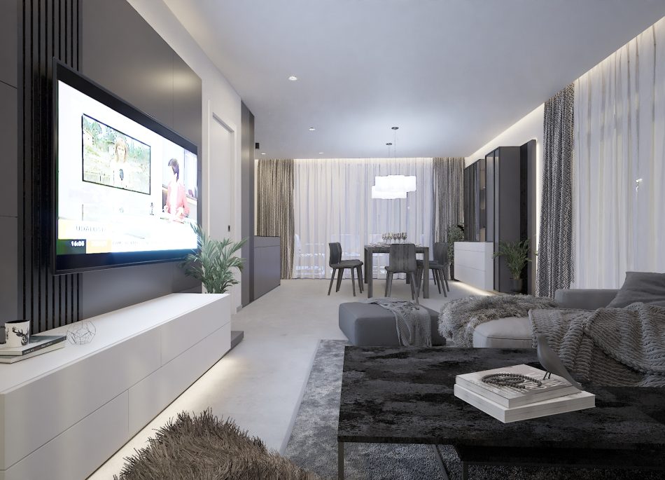Rodinný dům v Benicích je navržen s vysokým důrazem na detail a kvalitu. Interiér je obohacen o, námi navrhovaný a dodaný, nábytek z tmavého dřeva, který je dokonale doplněn bílou a šedou barvou, tvořící tak moderní a zároveň útulný design. Unikátním prvkem je stůl s kovovou konstrukcí opláštěnou umělým kamenem navazující na skříňku pod stolovou deskou, který se nachází v pracovně. Umělý kámen najdete rovněž na kuchyňské lince a konferenčních stolcích v obývacím pokoji. Tato kombinace dodává celé místnosti nádech luxusu a sofistikovanosti.